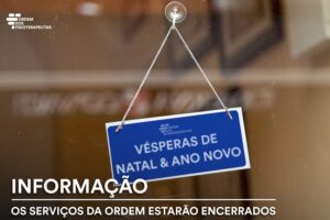 Informam-se todos os fisioterapeutas e público em geral que no dia 24 e 31 de dezembro, os serviços de atendimento presencial da Ordem dos Fisioterapeutas se encontram encerrados.